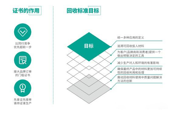 GRS sertifikasyonunun amacı, ürün üzerinde ileri sürülen iddiaların doğruluğunu ve ürünün iyi bir çalışma ortamında, minimum çevresel etki ve kimyasal etki ile üretilmesini sağlamaktır. GRS sertifikasyonu, şirketlerin, ürünlerinin geri dönüştürülmüş/geri kazanılmış içeriğini (bitmiş ve yarı mamul ürünler dahil) ve sosyal sorumluluk, çevresel düzenleme ve kimyasal kullanımının ilgili rollerini doğrulamak.